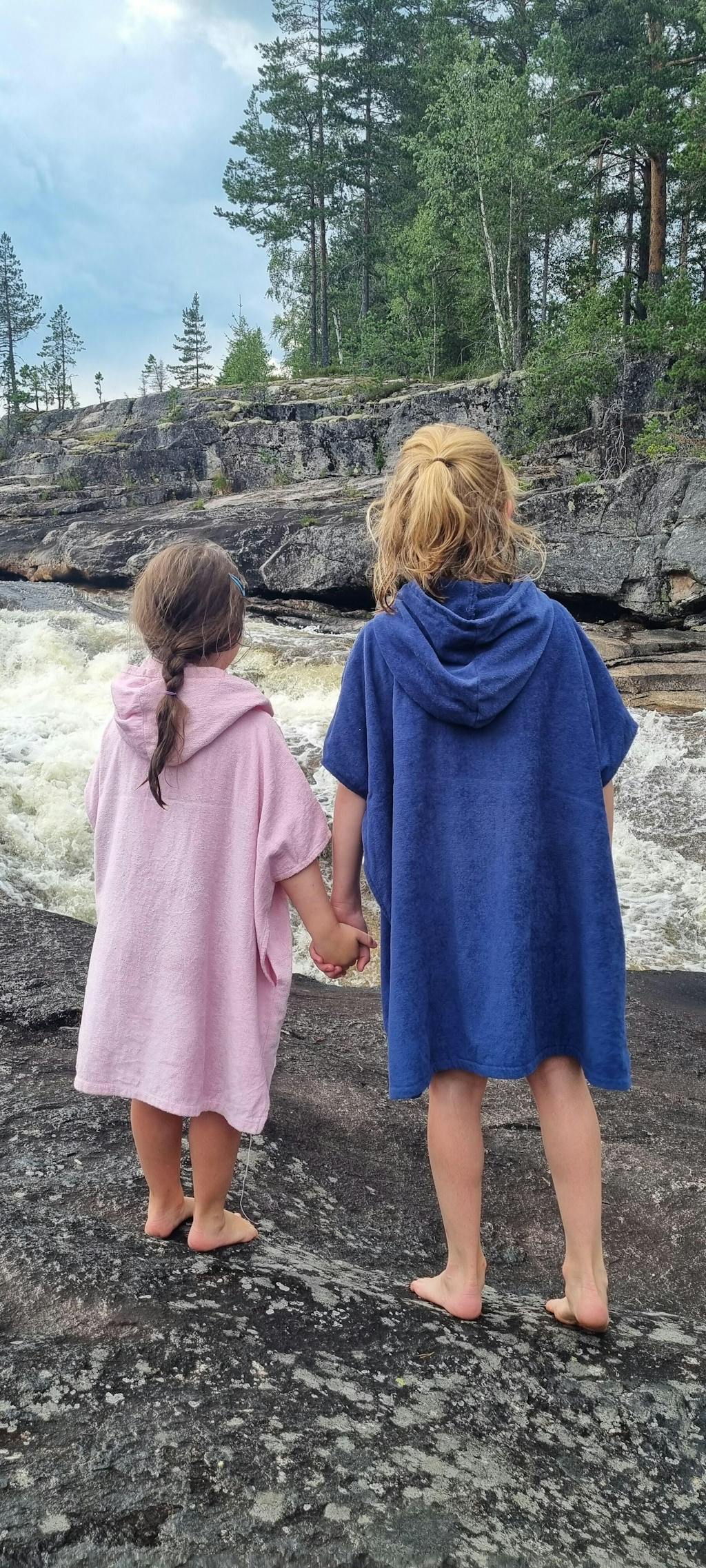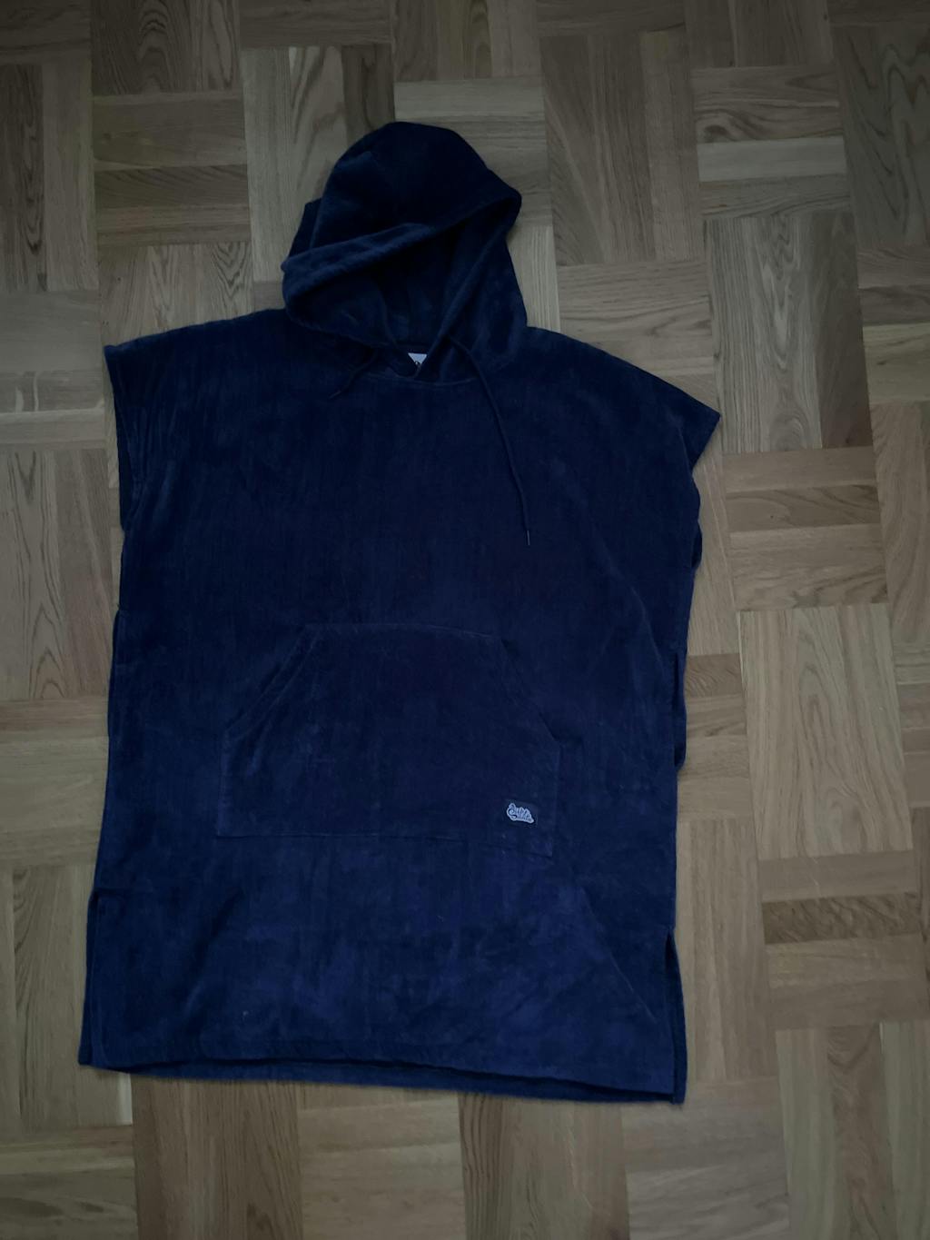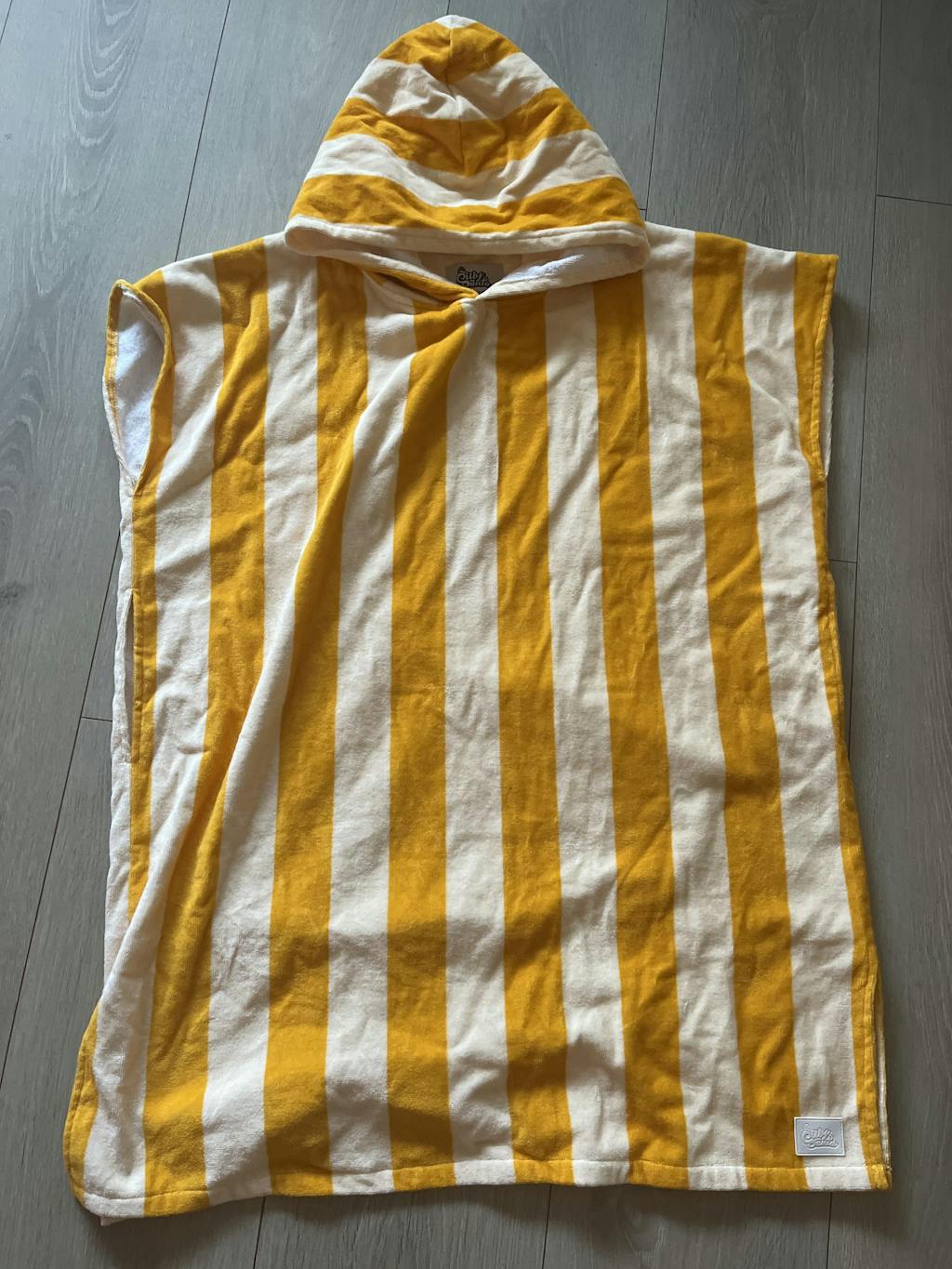 Ponchoen har en stor hætte og smarte åbninger i siden, som gør det nemt at skifte til og fra badetøj.